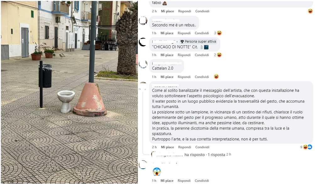 Il lungomare di Margherita di Savoia famoso – per un giorno – non per la bellezza del mare o della spiaggia, bensì per un protagonista inatteso: un water del bagno abbandonato in bella vista. La “tazza” è stata segnalata con una foto da un utente sul gruppo Facebook “Margherita Ti Amo”. E’ stata lasciata da qualche incivile del luogo nei pressi di un cestino dei rifiuti, certamente non abbastanza grande per contenerla. Certo, si tratta di facile ironia, la stessa che ha contraddistinto altri utenti del social network (cittadini salinari perlopiù). «Secondo me è un rebus», oppure «Cattelan 2.0», e poi ancora «Chicago di notte», citando Alvaro Vitali nei panni del celebre Pierino. Insomma un’amara ironia che sottolinea comunque il gesto sconsiderato e oltre ogni forma di civiltà da parte del responsabile. L’augurio è che questo “sporcaccione” che ha appena sostituito il proprio water possa essere individuato e sanzionato.